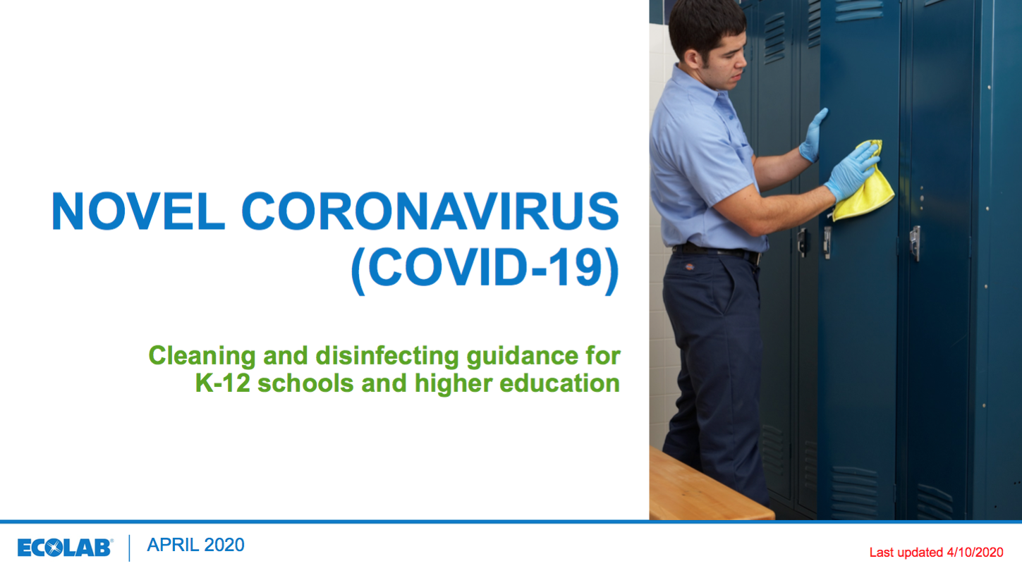 Cleaning and disinfecting guidance for K-12 schools and higher education related to Novel Coronavirus (COVID-19).