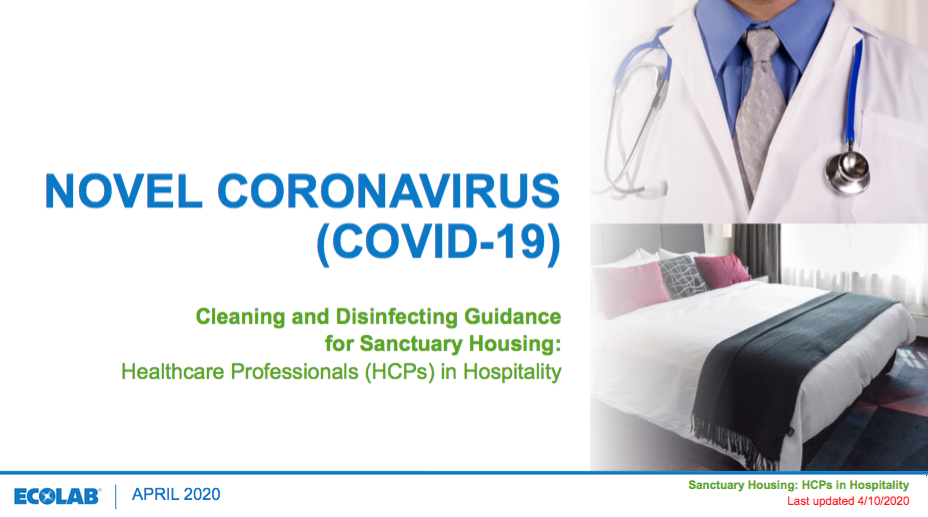 Cleaning and disinfection guidance for sanctuary housing for healthcare professionals in hospitality related to Novel Coronavirus (COVID-19).