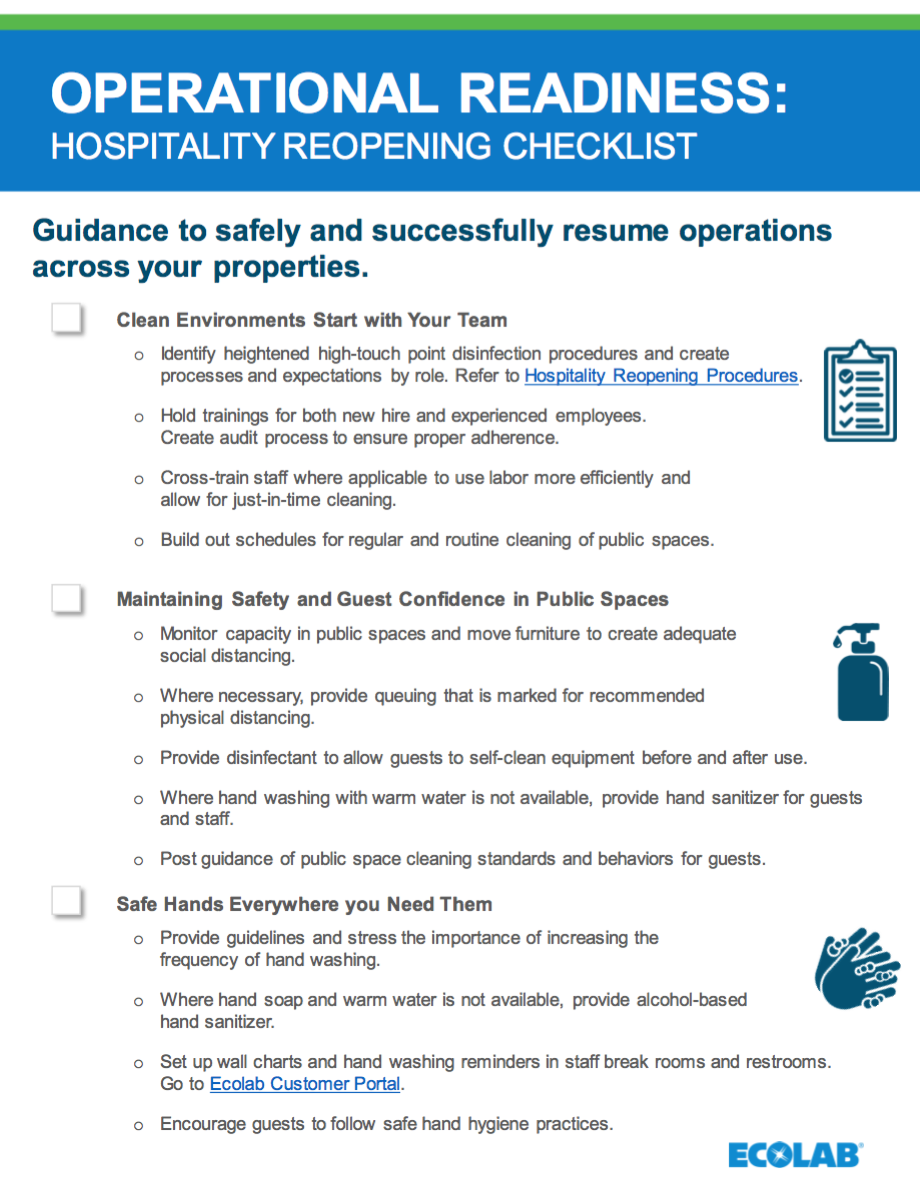 Operational Readiness: Hospitality Reopening Checklist - Corporate