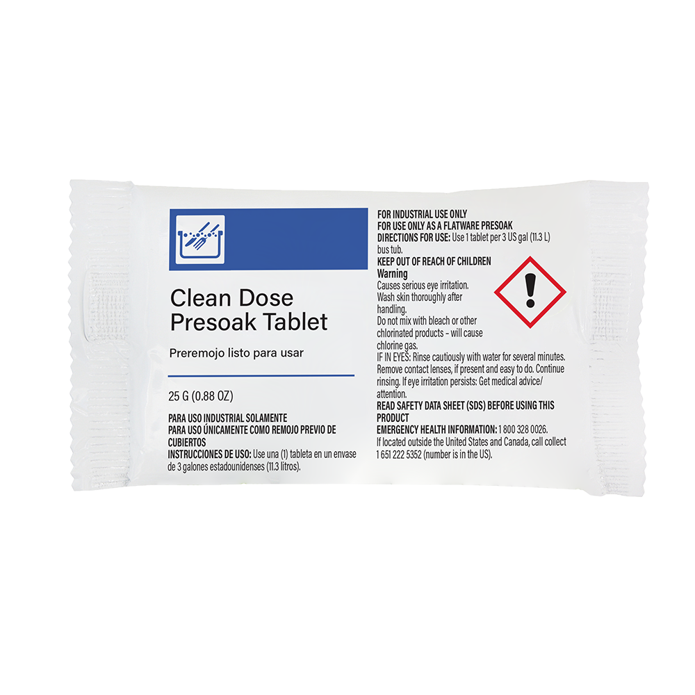 Produce consistently clean and spotless results with Clean Dose Presoak tablets. Easy and effective enzymatic formula that breaks down food soils before washing.