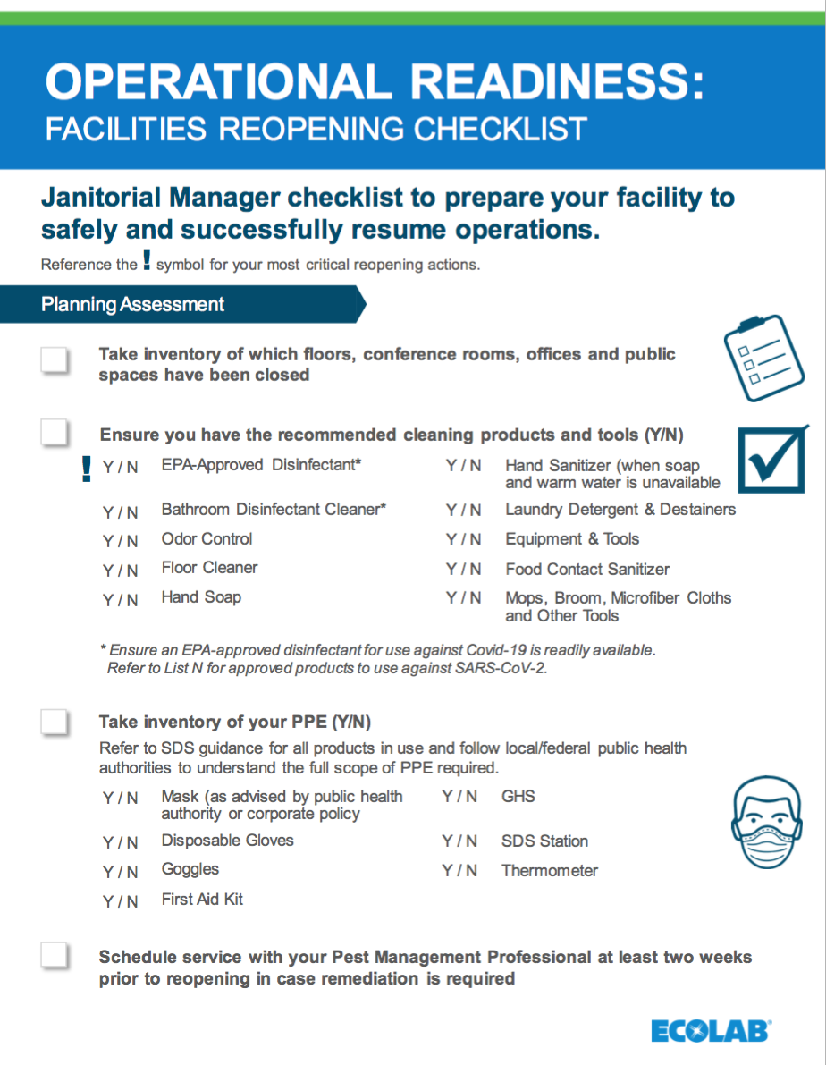 Operational Readiness: Commercial Facilities Reopening Checklist – Unit Level